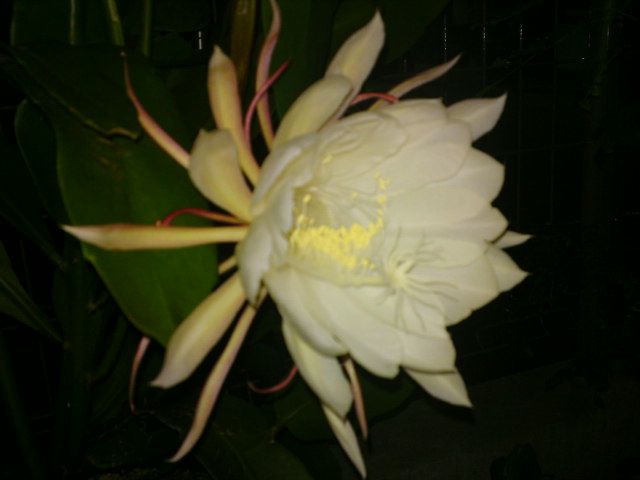 昨夜 我が家で咲いた一輪の月下美人。清楚で気品のある花の姿は暗闇の中でひっそりと咲いていました。危うく見逃すところでしたが…。