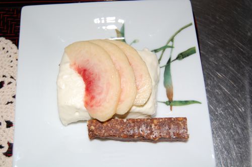 レアチーズケーキとraw カカオバー添え