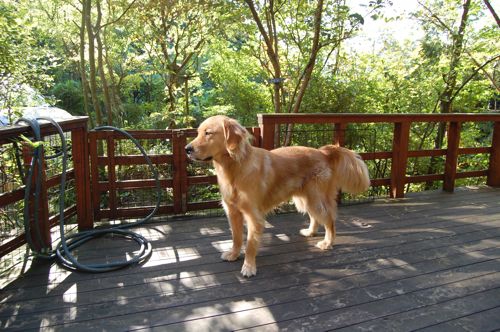 秋の日差しの中でワンコも深呼吸
