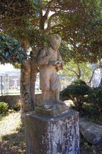 南畑小学校にはいい感じに苔むした金次郎さんが読書中。
