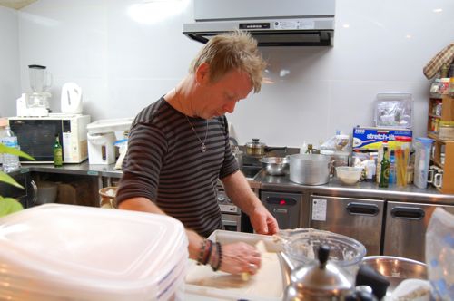 raw foodのシェフ Dan達を送り出して今年の民宿家業も(笑)無事に終えました。raw foodは酵素やミネラルを壊さない為に摂氏48度以下で加熱または生のまま食する調理法。Danのレストランのサイト(http://ja.wikipedia.org/wiki/ローフード)サラダなんてそのもの。 十数年前から肉のアレルギーが出て 食に絶望していた時に野菜の美味しさをヨガの先生が指南してくれた。それほど熱心ではないにしろ 玄米菜食に近い食生活は身体を変えているように思える。 福岡のレストランを貸し切ってのイベントで 家に宿泊して仕込みをすることになった。分野は違えどやはり創作はライブだ。テーブルいっぱいに広げられた食材(ほとんど野菜とナッツ類)にインスパイヤーされリズミカルに作業をこなしていくDanの集中力はさすがプロと思わせてくれた。5時間で仕込みは終わり そのままベッドに倒れ込んだようだった。(朝もそのままの服だった( ꒪⌓꒪)) で、始めてのプロの作るraw food from NYを味わってきました。メニューの多彩なバリエーションに驚き、ナッツ効果で味のコクも深い。しいていうなら夏が望ましい? ちょっとお腹冷えました(笑)