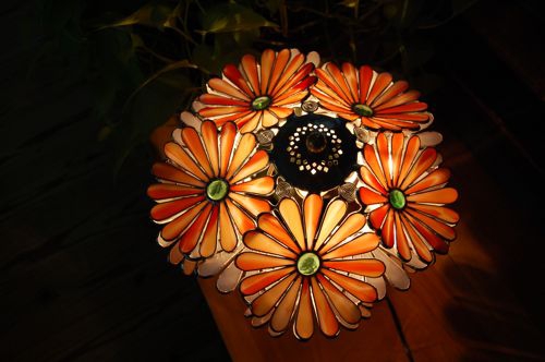 もう一件は 出来立てほかほかです。子育てを終了されたアニバーサリーでシーリングランプ(天井吊り)をテーブルランプにとのご要望でした。角度が違うと美しさも変わるものです。「デイジー和み」このランプの名前のようにご夫妻のこれからの時間が優しい語らいの多いいい時間になりますように。