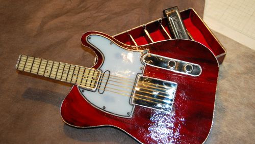 紅いフェンダーテレキャスター(ざっくりですが)いやあ 楽しかった。ちなみに御大コレクションのブルースハープBOXになっております。
