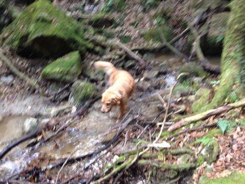 そのうち身体が温まったか 沢にダイブ。ゴールデンは水が大好きなんだ。