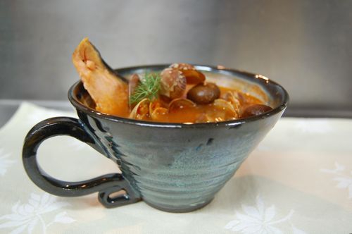 工房夢楽松本さんが窯出ししたばかりの作品にブイヤベース。