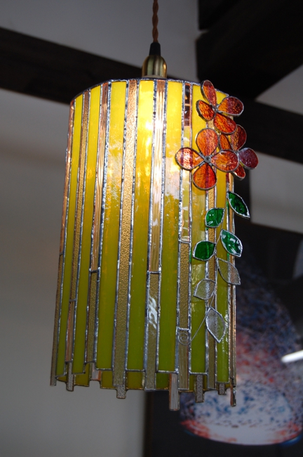春日教室戸枝さんの ガラスの個性を生かした吊りランプ
