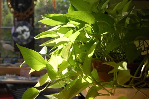 秋の陽の中のライムポトス
